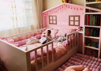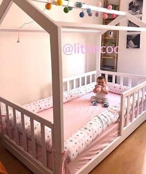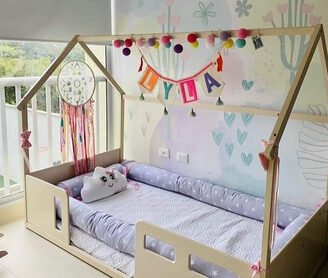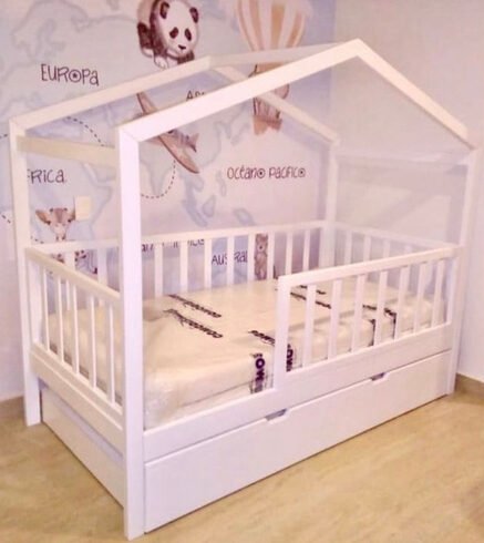 Cama cuna elaborada en cedro para colchón 100×190 cm, barandas removibles, casita 100×100 cm, ventana y techo, tu eliges el color.