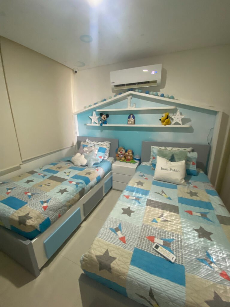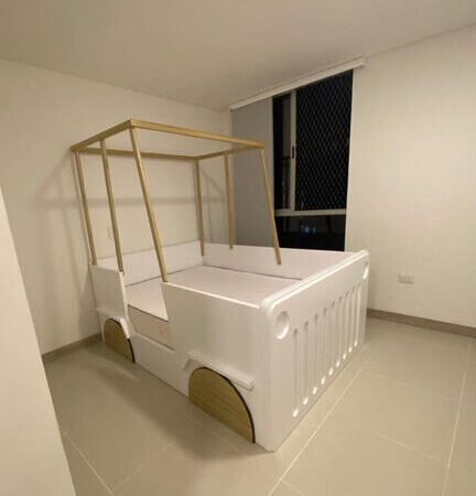 Cama elaborada en Cedro paracolchón 100×190 cm, cama auxiliar100x180 cm, barandas removibles. tueliges los colores.