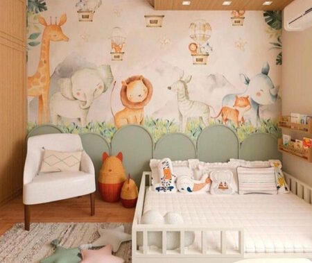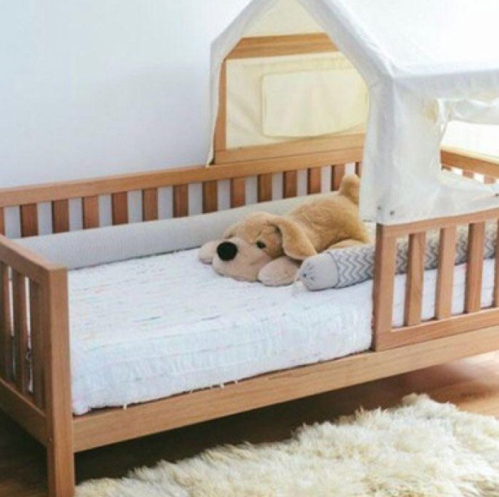 Cama cuna elaborada en cedro para colchón 140×190 cm, tapizada, barandas removibles, tu eliges la tela.