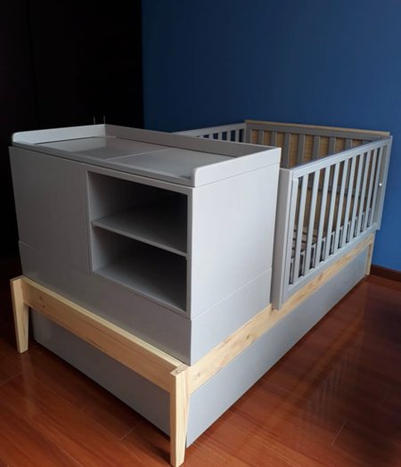 Cambiador elaborada en mdf 15 mm, 100x90x40 cm, mesa de noche y comoda, bandeja para cambiador.