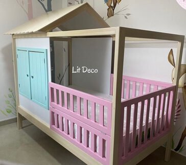 Cama elaborada en Cedro para colchón 100×190 cm, cama auxiliar 100×180 cm, barandas removibles. tu eliges los colores, casita elaborada en Rh con ventana y lampara.