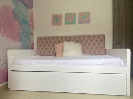 Cama elaborada en Cedro para colchón 100×190 cm, cama auxiliar 100×180 cm, barandas removibles. rodadero, tu eliges el color.